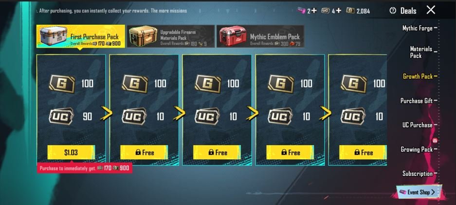 As an Example: Normally, purchasing 170 UC directly costs around $3.00. By taking advantage of the Growth Pack, you save money and get extra UC for free.