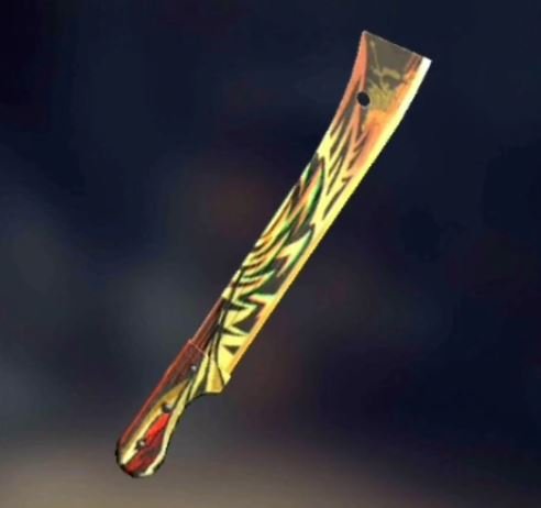 Swordfish Parang was introduced around 2019 as part of a summer or ocean-themed event in Free Fire. Additionally, The blade has a blue aquatic design inspired by a swordfish shape, giving it a unique curved appearance. Its ocean-style theme makes it very different from darker skins. The playful yet sharp look made it popular among casual and competitive players. Today, it remains one of the rarest old themed Parang skins.