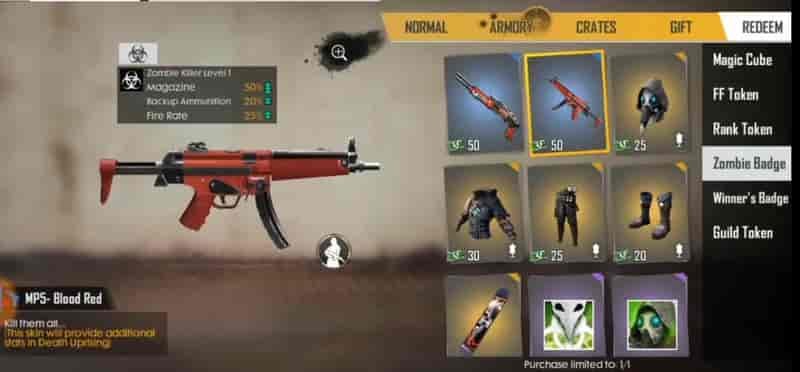 The MP5 Blood Red is one of the early weapon skins in Free Fire that gained attention for its aggressive red-and-black design. Garena introduced it during older themed events and weapon crates when the game was still developing its cosmetic system. This skin does not provide major gameplay advantages, but its visual appeal makes it highly attractive. The deep red color combined with dark detailing gives it a dangerous battlefield look. It is now considered moderately rare because it is rarely available in modern events. OG players often keep it as a nostalgic item from the early days of Free Fire.