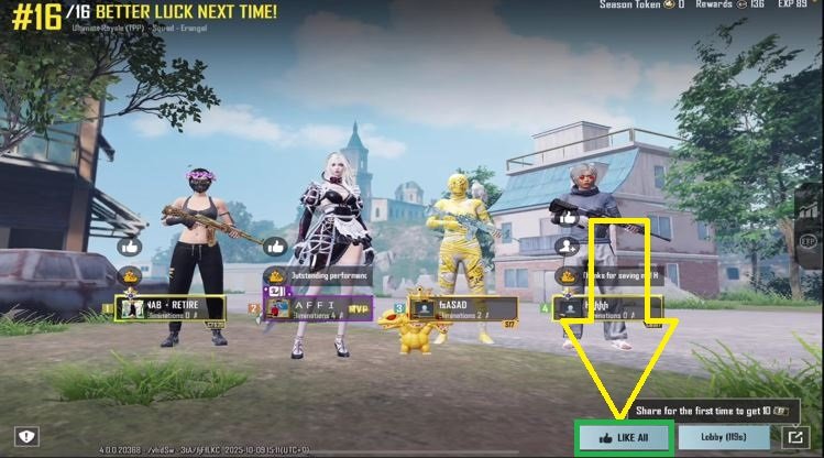 For example: If you play 10 matches daily and receive 3 likes from your teammates per match, you’ll earn 30 likes daily. In around 34 days, you’ll have 1,000 likes — enough to unlock the Well-Liked Title easily.